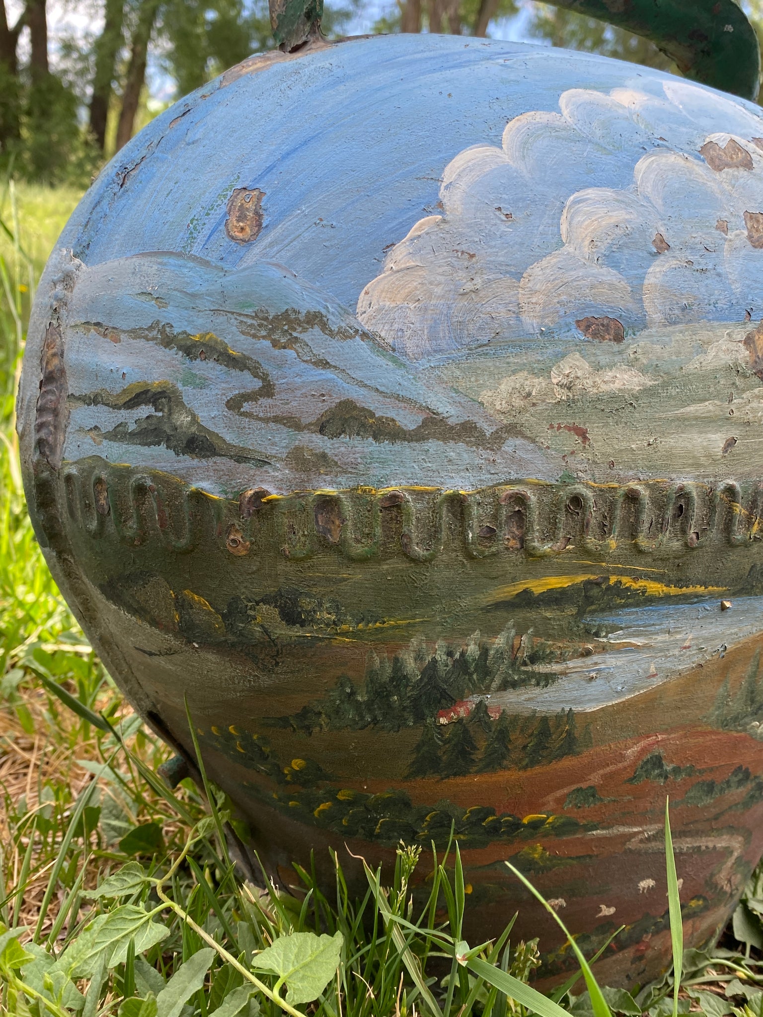 XL Vintage Swiss Cowbell: Hand-painted with Alpine Village Scenes